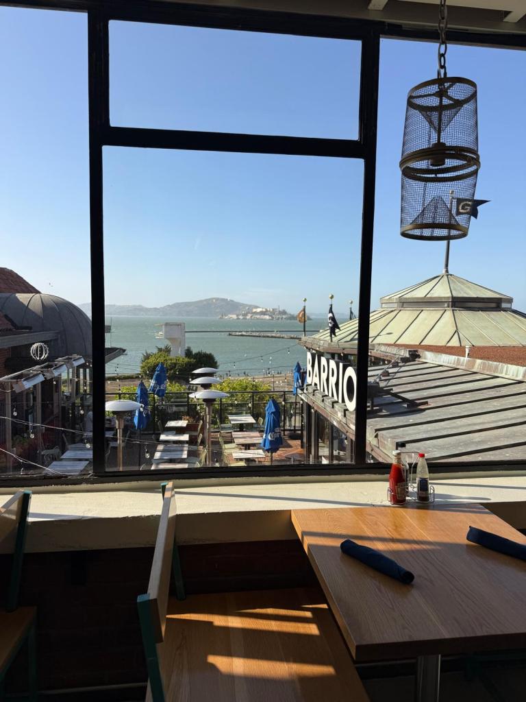 Lage & Atmosphäre: Direkt am Wasser gelegen, habt ihr einen tollen Blick auf Alcatraz und die Bucht. Man kann super draußen in der Sonne sitzen, wenn es nicht zu kalt ist, oder gemütlich drinnen bleiben. Gerade in San Francisco, wo das Wetter ja gerne mal wechselt, ist das ein echter Vorteil.