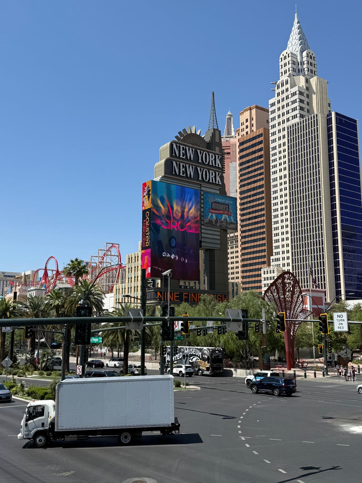 Gut gestärkt ging es dann weiter nach Las Vegas, wo unsere Reise schließlich ihr Ende fand. Die Fahrt dorthin fühlt sich an, als würde man vom Mond auf einmal mitten in eine funkelnde Glitzerwelt gebeamt. Nach Tagen in Nationalparks und kleinen Orten ist das grelle, laute, übervolle Vegas erstmal ein kleiner Kulturschock – aber eben auch ein ziemlich passender Abschluss für so einen Roadtrip.