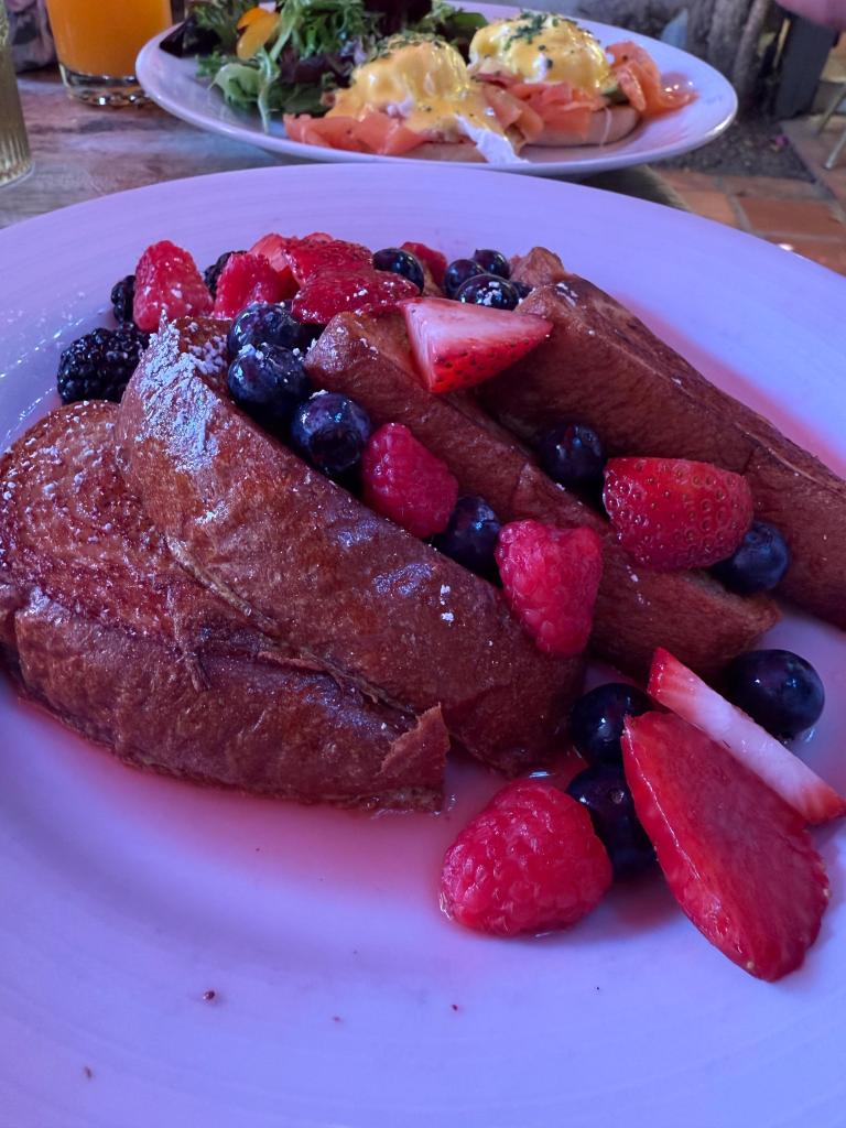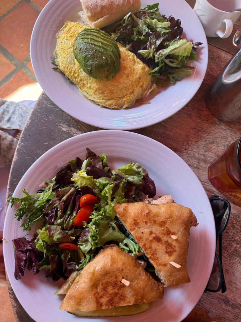Am nächsten Morgen haben wir uns im Hotel Fahrräder geschnappt und sind einfach losgeradelt – vorbei an den typischen Retro-Häusern mit den bunten Türen, die Palm Springs so bekannt machen. Zum Frühstück sind wir im Farm gelandet – und ich lehne mich jetzt mal weit aus dem Fenster: Das war mit Abstand das beste Frühstück unserer ganzen 3 Wochen in den USA. Unbedingt hingehen, wenn ihr hier seid!