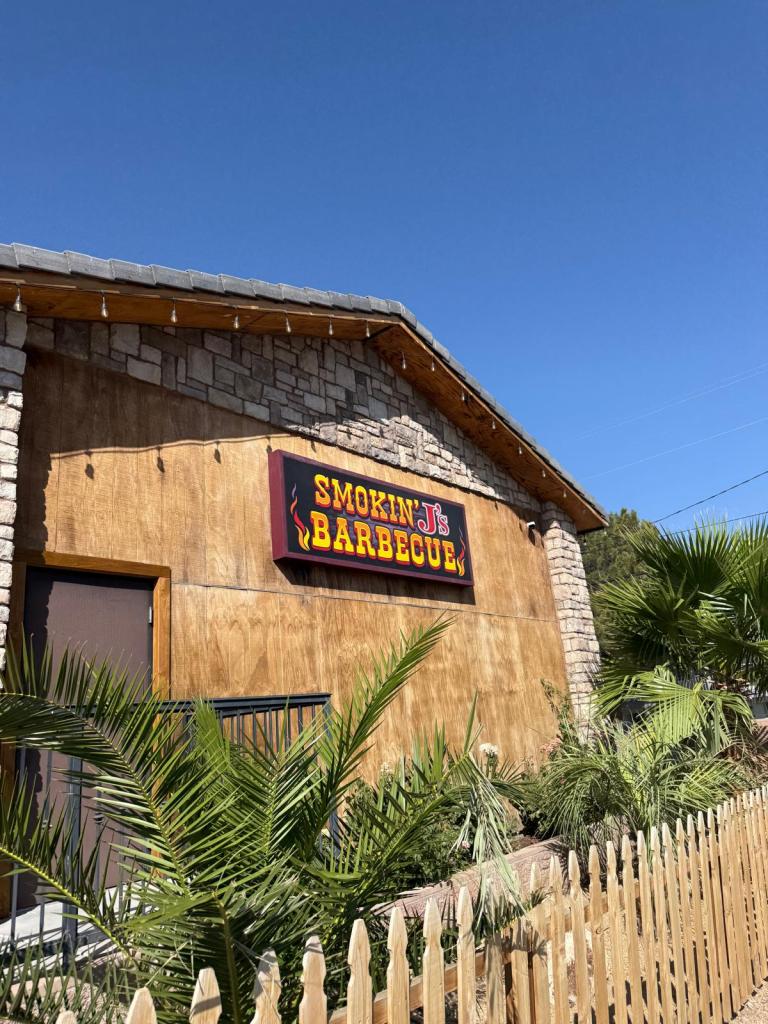 Mitten im Nirgendwo kam dann aber mein kulinarisches Highlight der ganzen Reise: Smoking J’s Barbecue. Schaut euch unbedingt mal die Google-Bewertungen an – die sprechen für sich. Wir haben uns dort eine große Mischplatte bestellt, und was soll ich sagen: Fall-off-the-bone BBQ-Rippchen, saftiges Pulled Pork, perfekt geräuchertes Brisket – alles so unfassbar gut, dass wir am liebsten gleich nochmal bestellt hätten.
