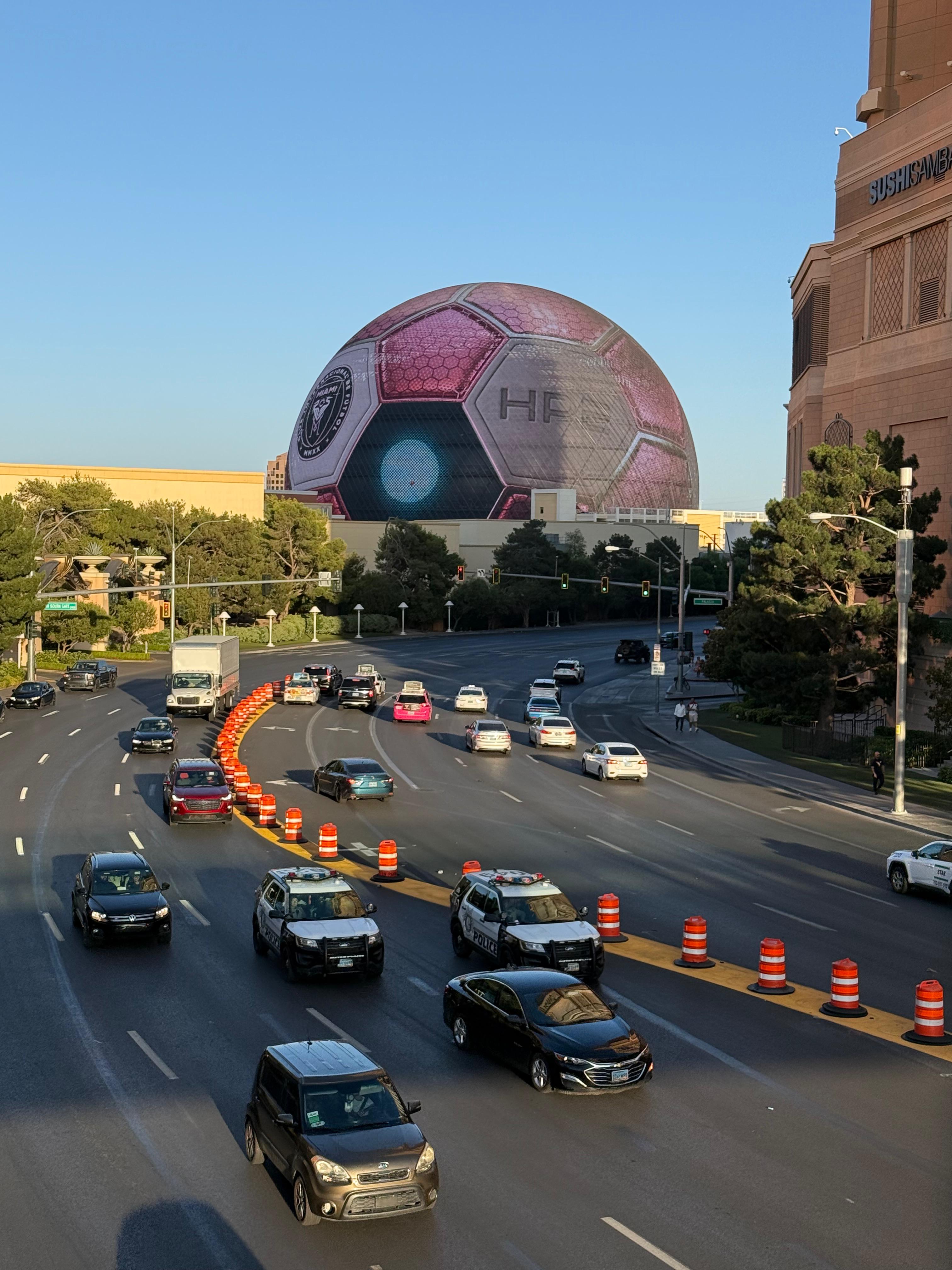 Noch ein lustiger Funfact zum Thema Entfernungen in Vegas: Wir konnten von unserem Hotel aus den Club sehen (siehe Foto), sind dann aber trotzdem etwa 20 Minuten von unserem Zimmer bis dorthin gelaufen – und das eigentlich „nur“ auf die andere Straßenseite. Vegas täuscht mit seinen Distanzen also gerne mal!