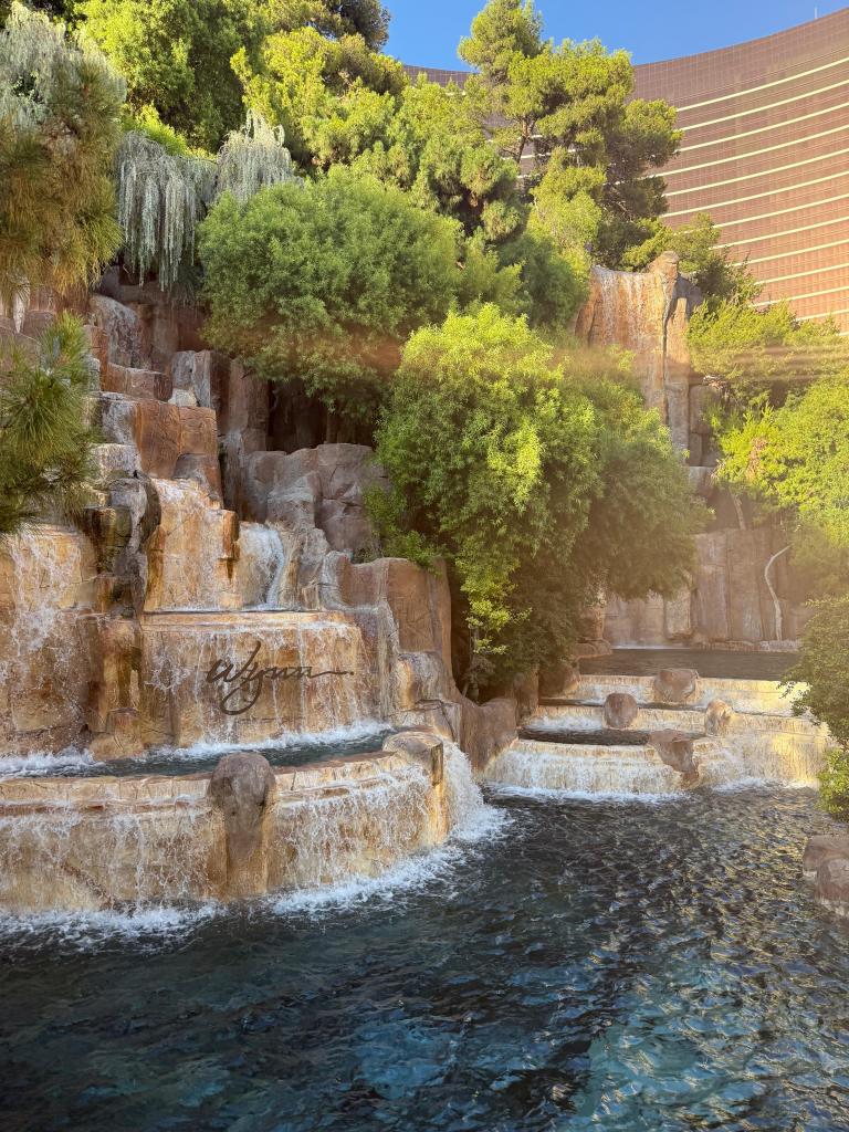 Zum Thema Bars: Im Bierpark im Paris Hotel haben wir uns mittags einfach mal hingesetzt, Wings gegessen, ein Bierchen getrunken und dabei den Blick aufs Bellagio, Caesars Palace und die Fontänenshow genossen. Die Bar ist zwar draußen, aber es gibt Schattenplätze und kleine Sprühdüsen, die Wasser vernebeln – total erfrischend an heißen Tagen. Solche Sprühanlagen gibt’s übrigens in vielen Restaurants und Bars, nicht nur in Vegas.
