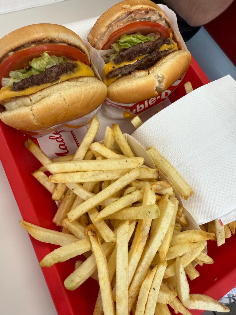 Wenn man an der Westküste landet, führt einen der erste Weg quasi automatisch zum Kult-Burgerladen: In-N-Out Burger! Wir mussten das natürlich auch direkt testen. Ein kleiner Tipp vorweg: Schaut euch unbedingt mal die „Secret Menüs“ auf Instagram oder TikTok an. Vor Ort waren wir erst etwas verwundert, weil manchmal Pommes mit Käse und Chilis an uns vorbeigetragen wurden, die gar nicht auf der Karte standen. Genau das sind diese geheimen Specials – man kann sie aber immer bestellen.